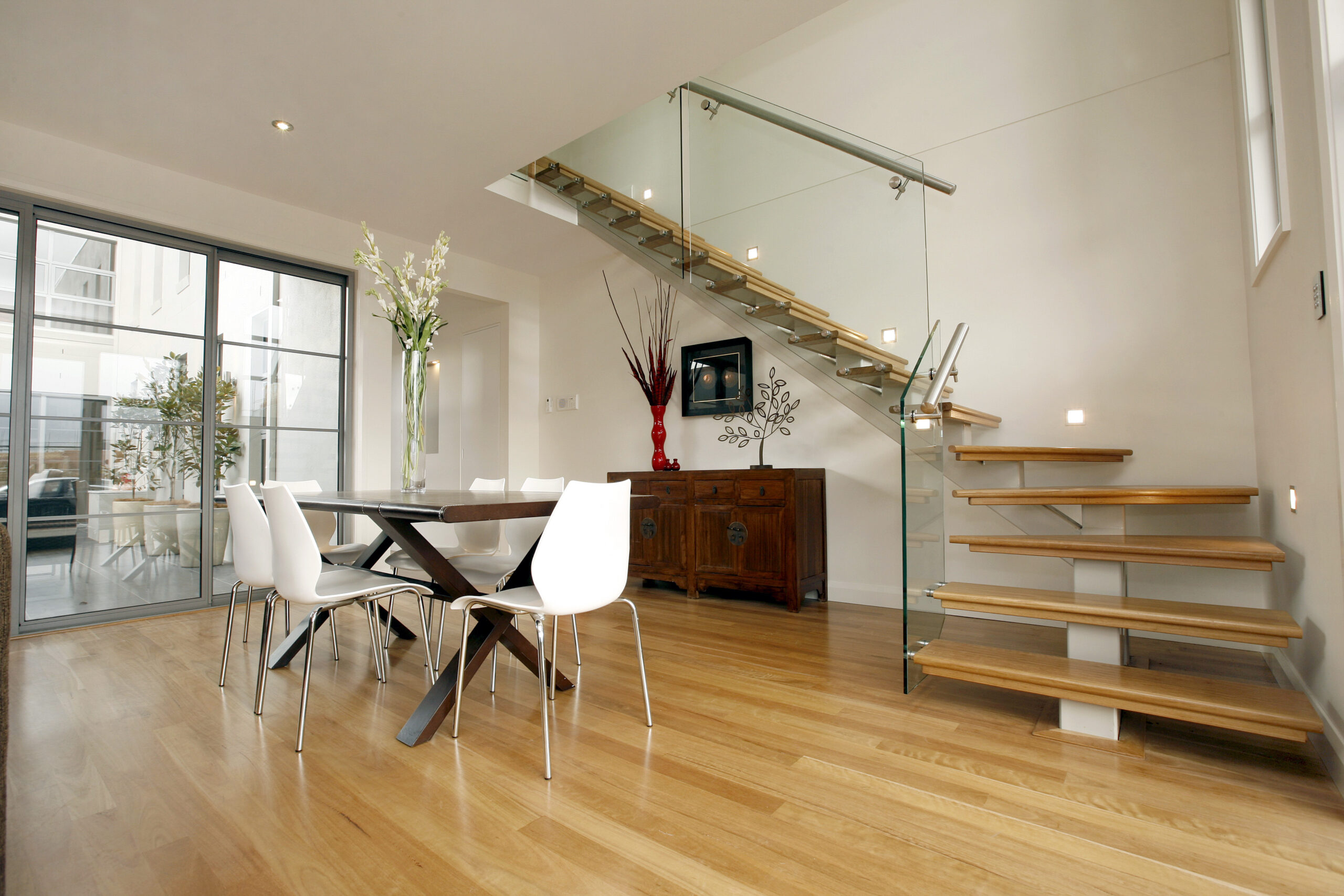 Finished in Dulux® Pearl White and paired with solid hardwood timber treads, the staircase brings a light, modern feel that complements its surroundings. As with all staircases over one metre in height, a compliant handrail was included to meet BCA requirements—balancing safety with style.