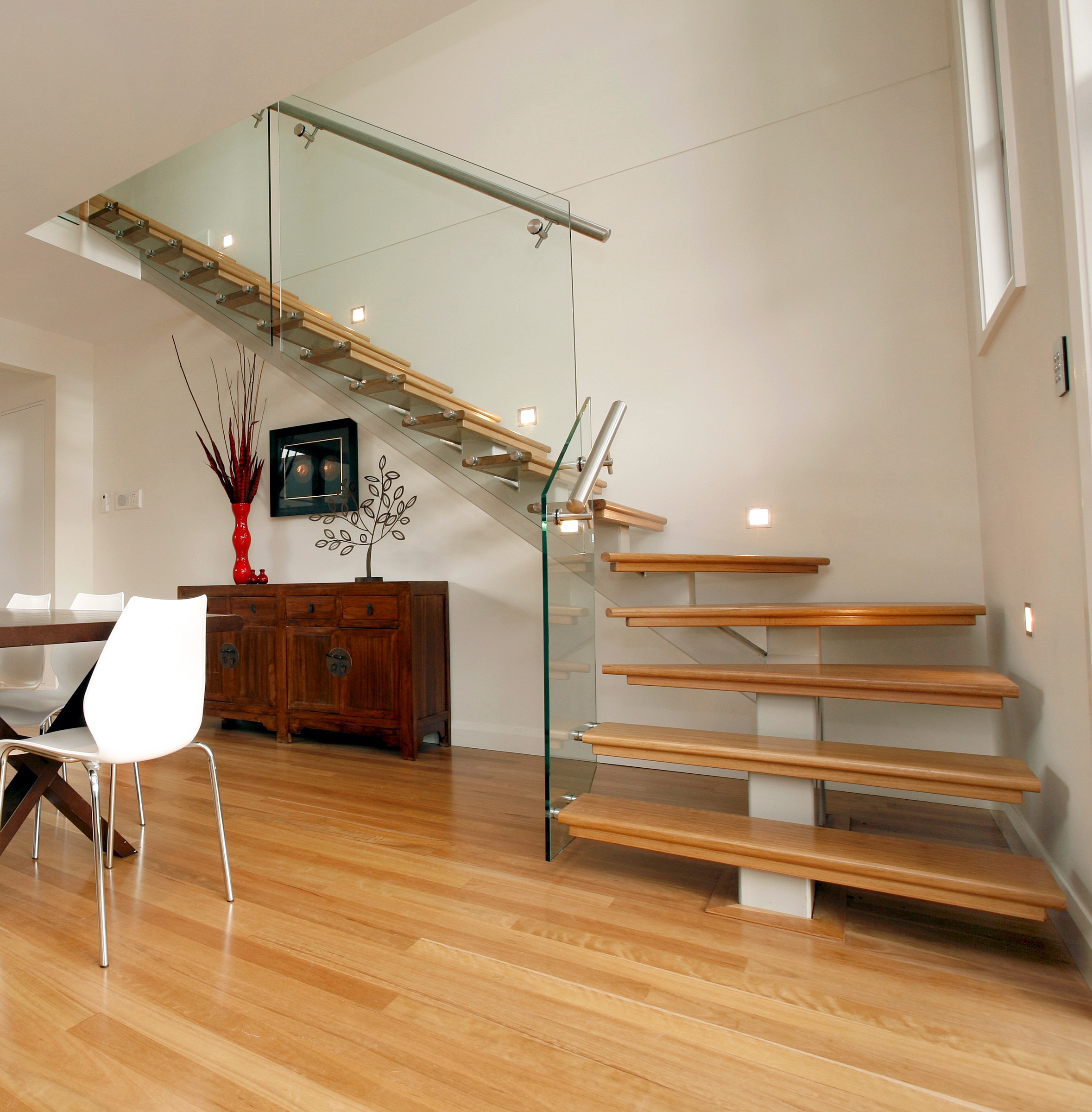 This L-Shaped Steel Spine Staircase was designed as a standout corner feature in the main living space.